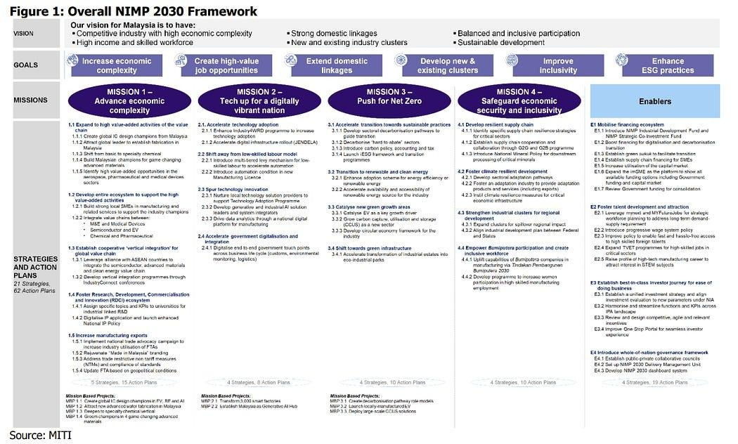 Similarly, Malaysia’s industrial policy (NIMP) identifies the right capabilities such as advanced manufacturing, digitalization, net-zero, and supply chain resilience, but offers little clarity on the unifying purpose behind them.